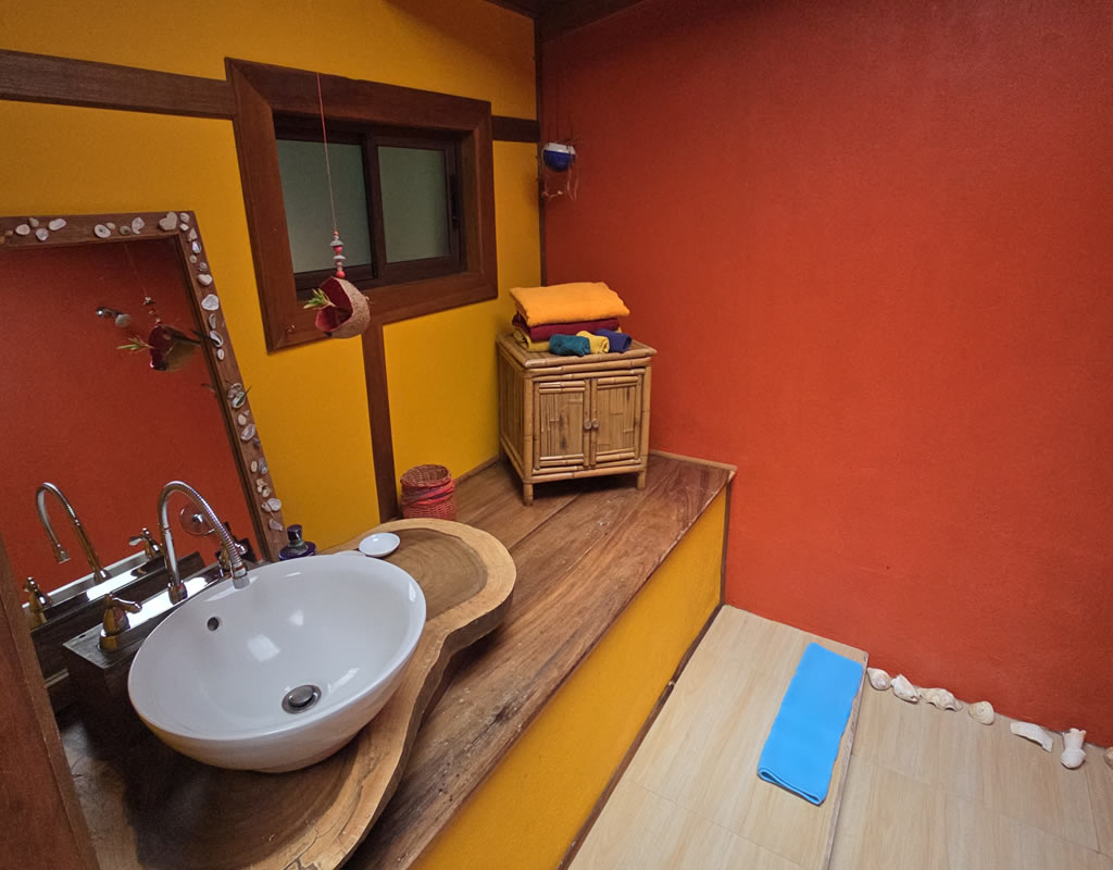 Una cocina completa con hermosos muebles hechos a mano con madera local, una decoración muy llamativa y coloridas hamacas. La calidez de este espacioso entorno y la hermosa naturaleza que lo rodea serán sin duda una inspiración para una estadía inolvidable.